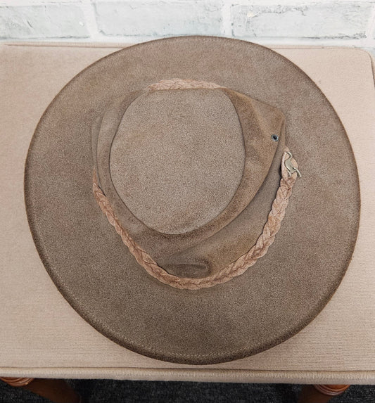 Tayberry Company Brown Leather Outback Cowboy Hat Size Large
