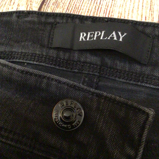 Replay Anbass M914 Black Ripped Jeans Size 30