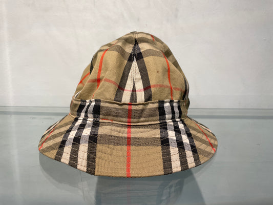 Burberrys Vintage Nova Check Beige Red Black Rain Bucket Hat Size 6 7/8 56