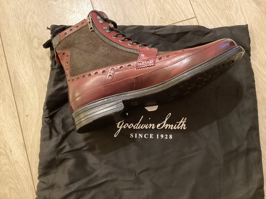 Goodwin Smith Artisan Bennett Bordo Black Scottish Style Brogue Boots size 10 BNIB