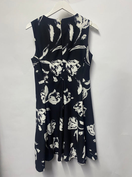DKNY Black and White Floral Sleeveless Stretch A-Line Dress 12