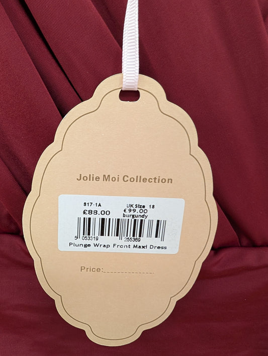 BNWT Jolie Moi Burgundy Plunge Front Wrap Maxi Dress Size 18