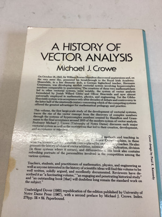 A History of Vector Analysis the Evolution of The Idea of A Vectorial System Michael J Crowe