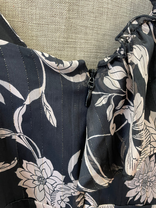 Bcbgmamaxazria Black Floral Pattern Asymmetric Short Dress Size 2 Extra Small