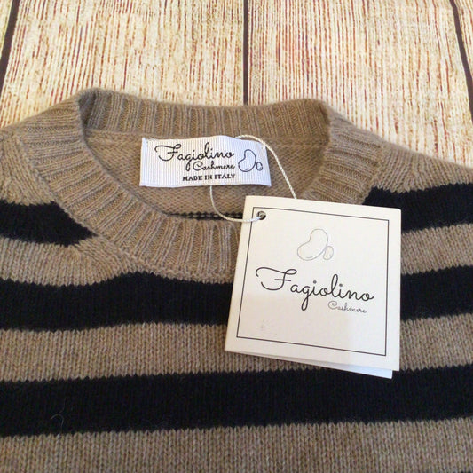 BNWT Fagiolino Beige & Black Striped 100% Cashmere Jumper Size 6 (on label)