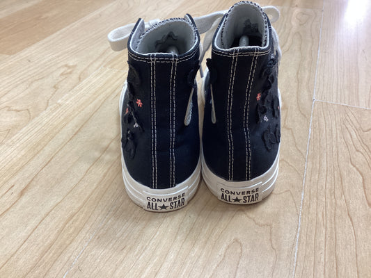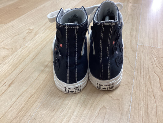 Chuck Taylor All Star Hi organza flower trainers in black with white chunky laces, Size UK6