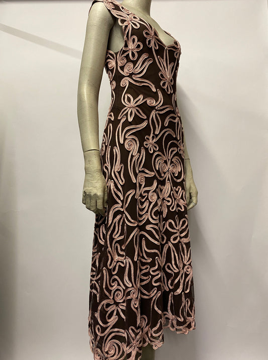 Phase Eight Pink and Brown Floral Embroidered Midi Dress 12