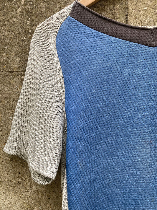 SaleMarni Grey and Blue Short Sleeve Knit Jacquard Panelled Top UK 12