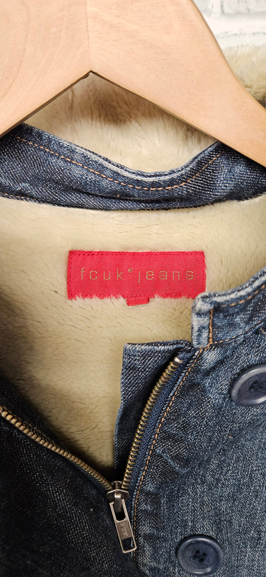 FCUK Jeans Fleece Lined Denim Jacket with Removable Hood Size Large
