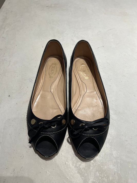 TOD'S Black Peep-Toe Flats Size 4