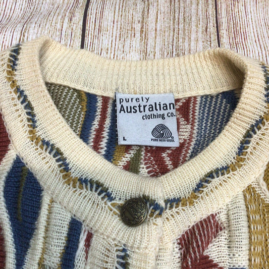 Vintage Purely Australian Multicoloured Pure Wool Cardigan Size L