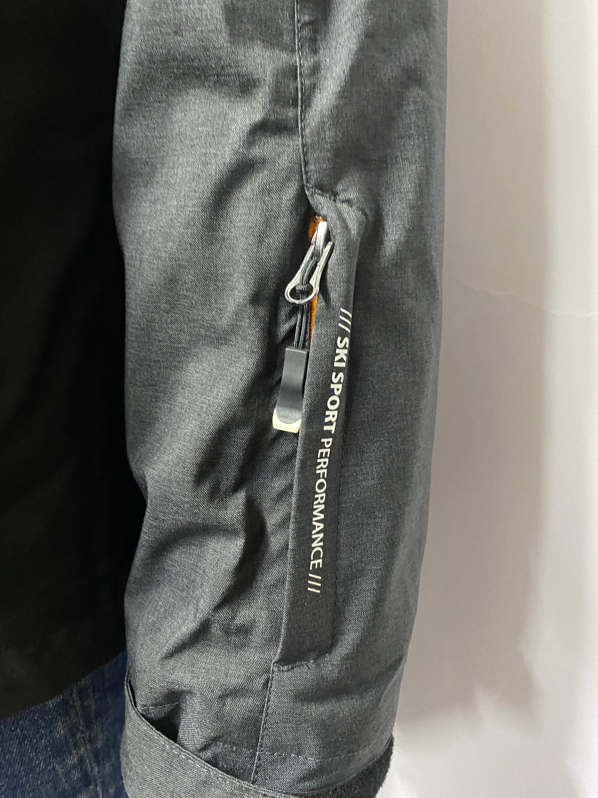 Good quality waterproof and insulated hooded ski jacket. Featuring a removable adjustable hood, laminated main zip, two zip side pockets, laminated zip pocket and ski pass pocket. Also featuring goggle pocket and internal zip pocket, pit zips, removable snow skirt and velcro adjustable cuffs with internal thumb hole cuffs. Perfect for the slopes!