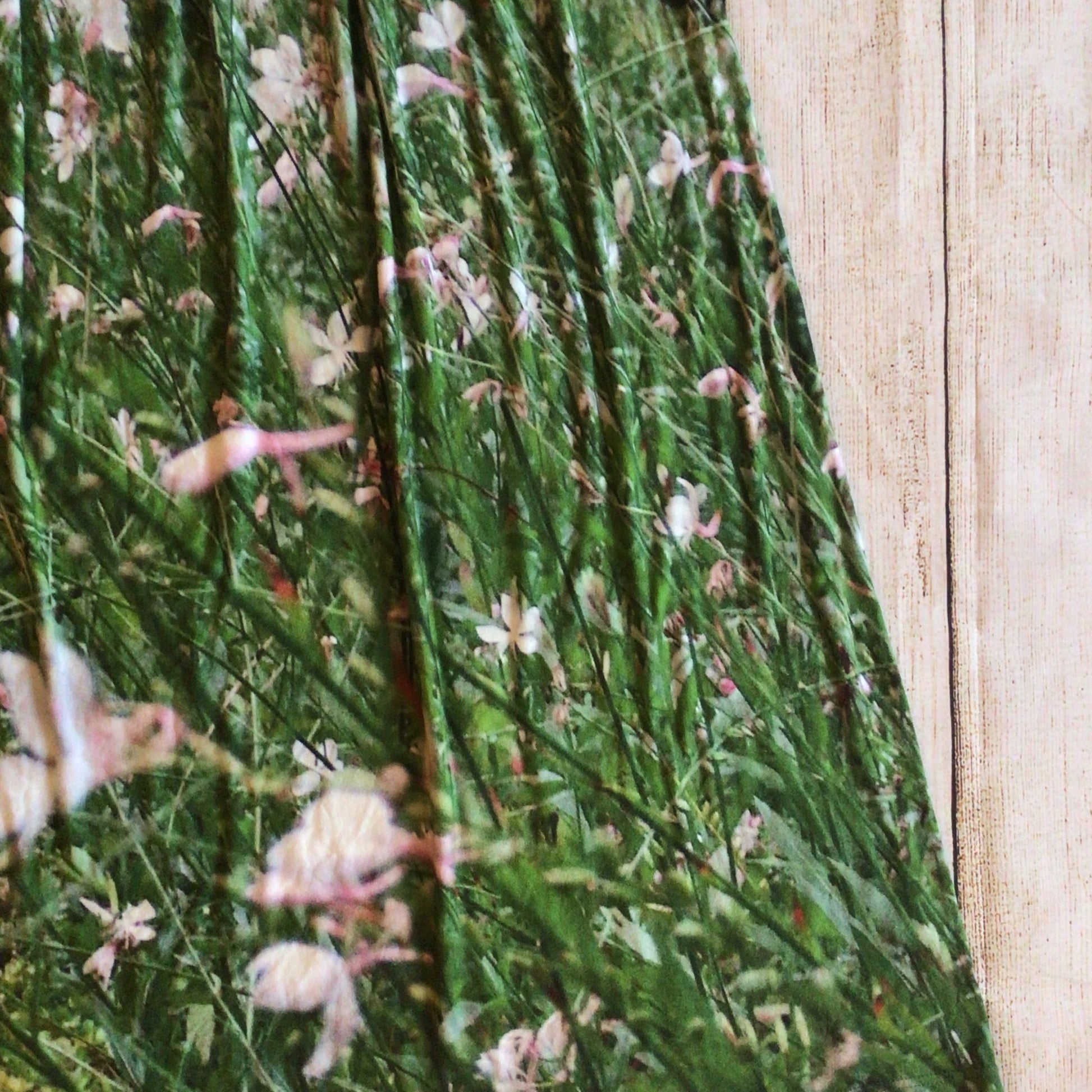 Skirt has writing near the hem on the back: les gauras de mon jardin