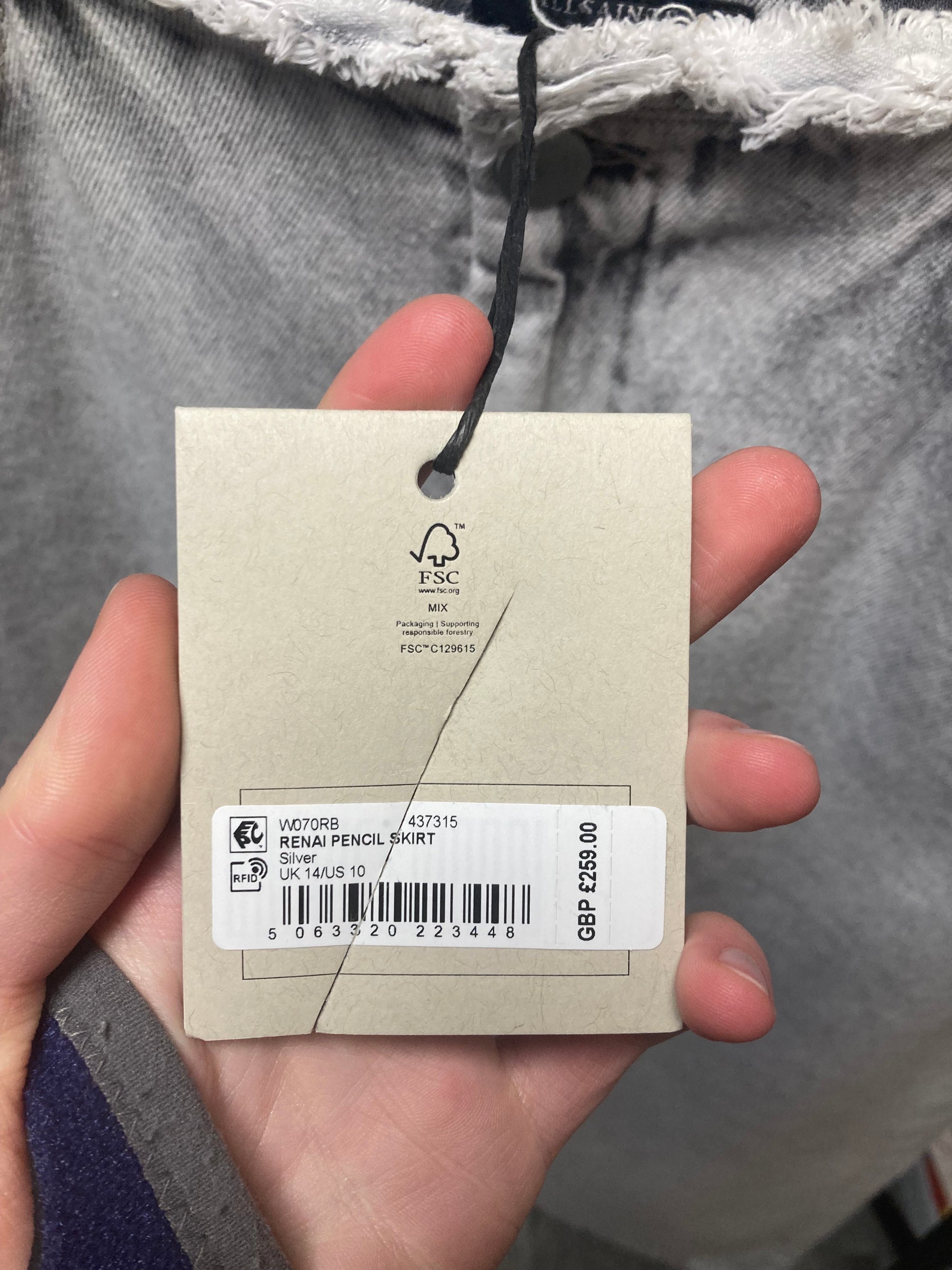 AllSaints Grey Denim Renai Pencil Skirt Size 14