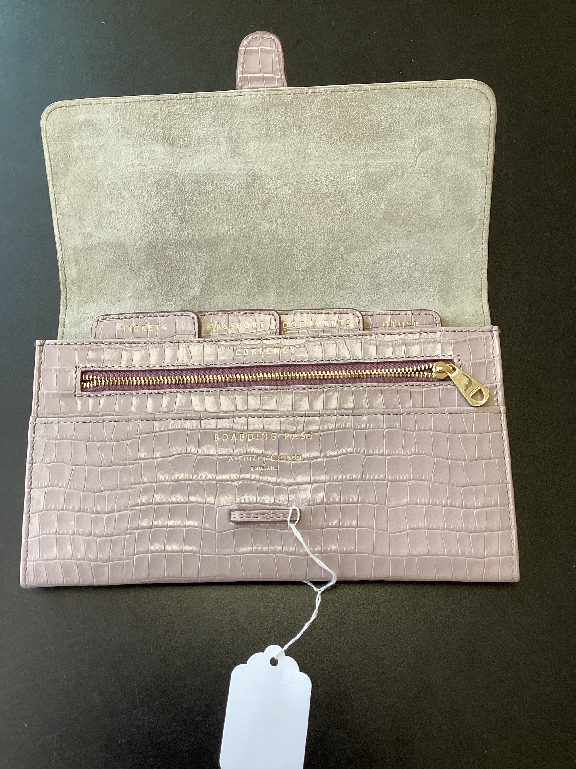 Aspinal of London Crocodile embossed Travel Wallet Mauve