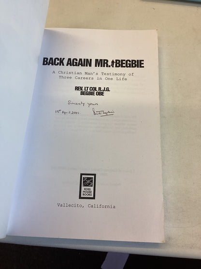 Back Again Mr Begbie A Christian Man's Testimony of Three Careers in One Life Rev Lt Col R J G Begbie OBE Signed