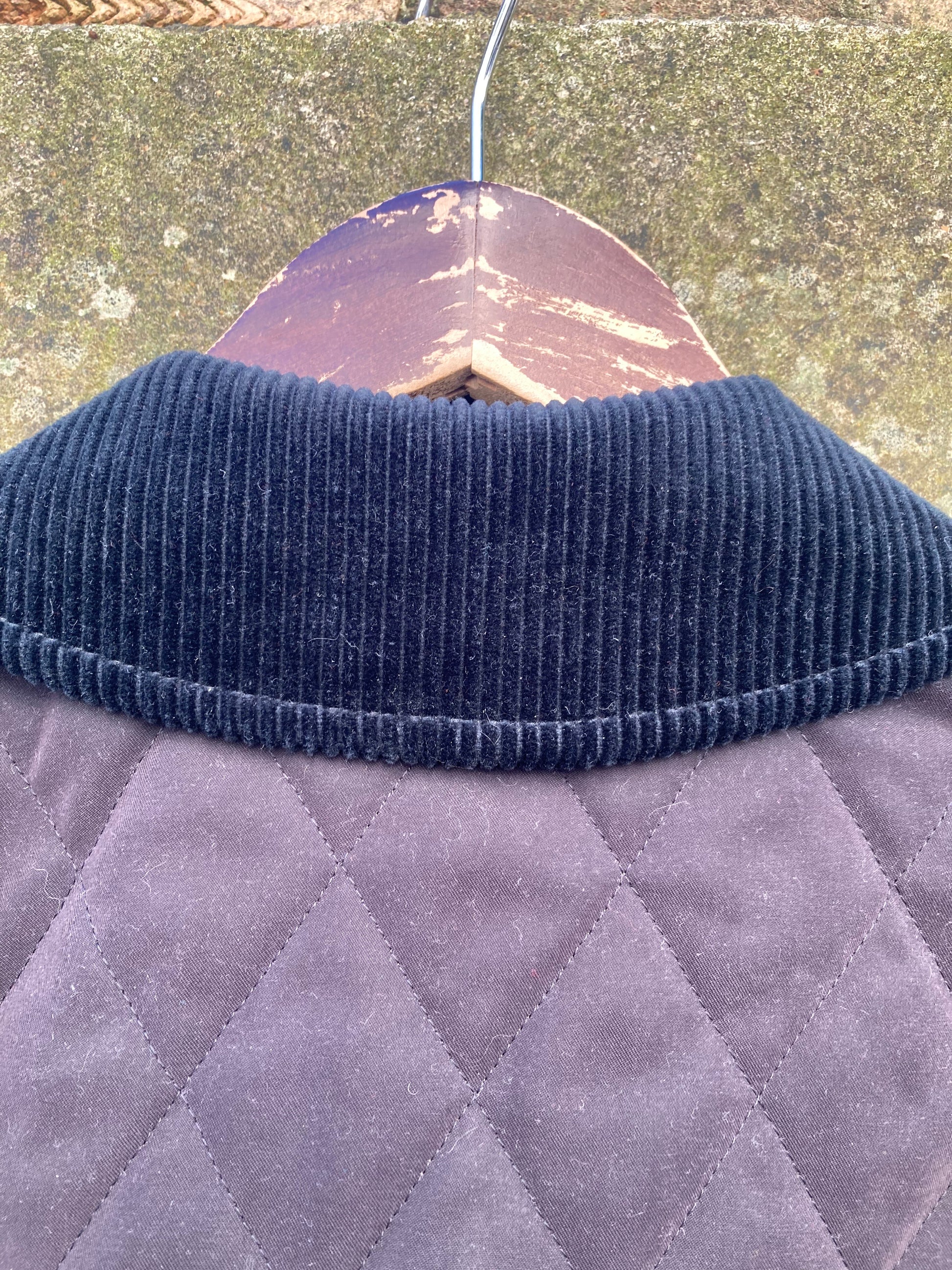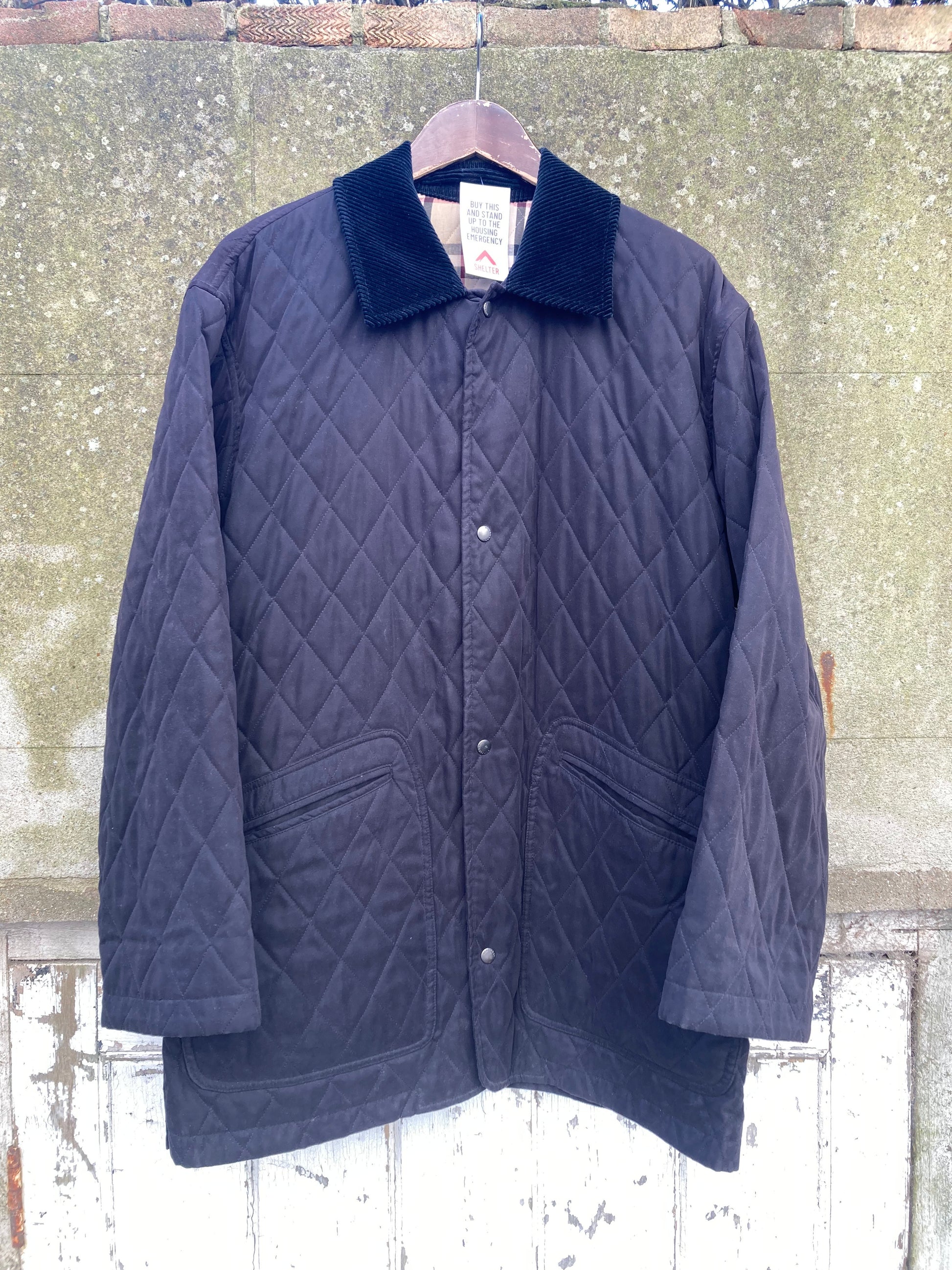 Lightyl insulated quilted jacket from british designer brand burberry. Corduroy collar, snap button closure and famous burberry check lining. No size label, but fits like a Men's Medium.