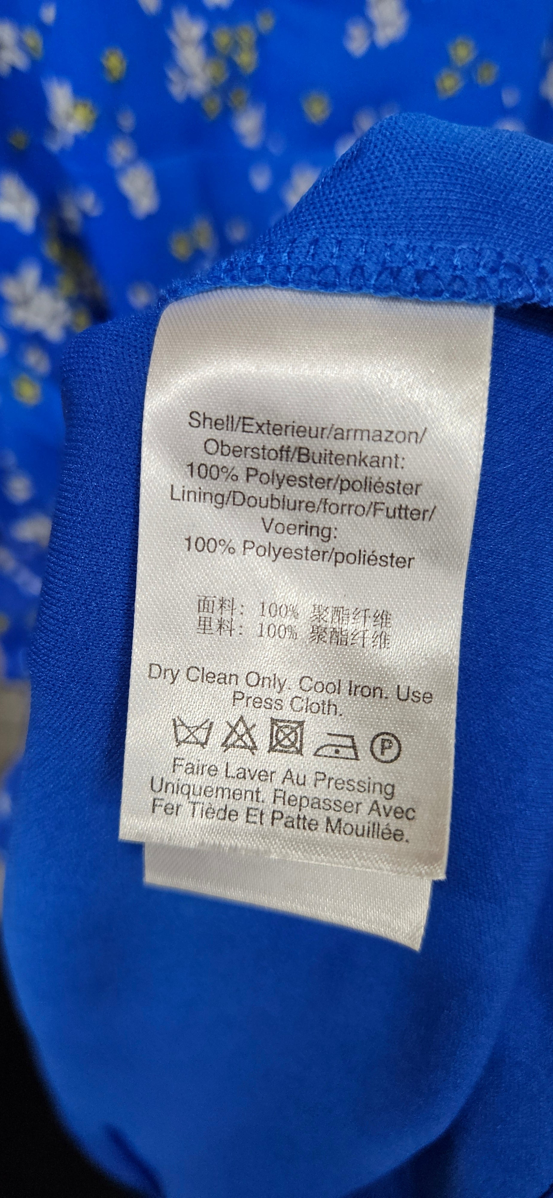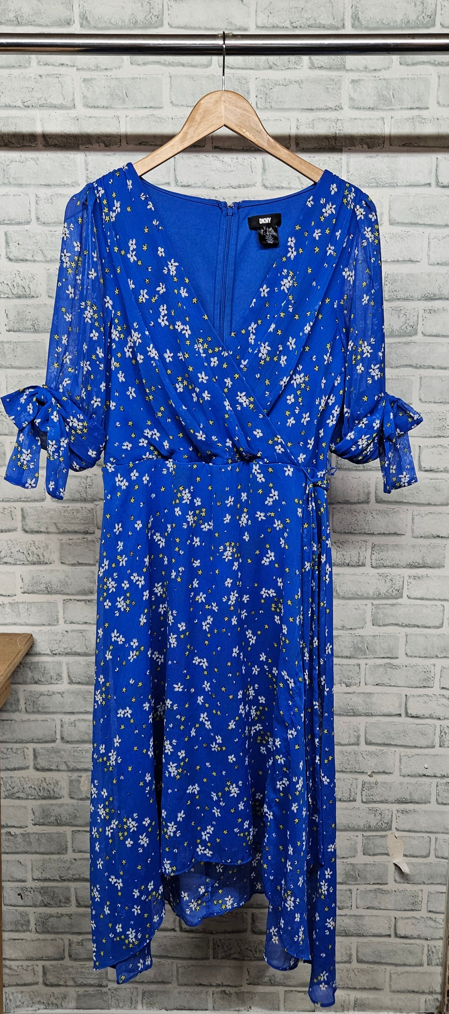 DKNY Blue Floral V-Neck A-Line Dress Size Large