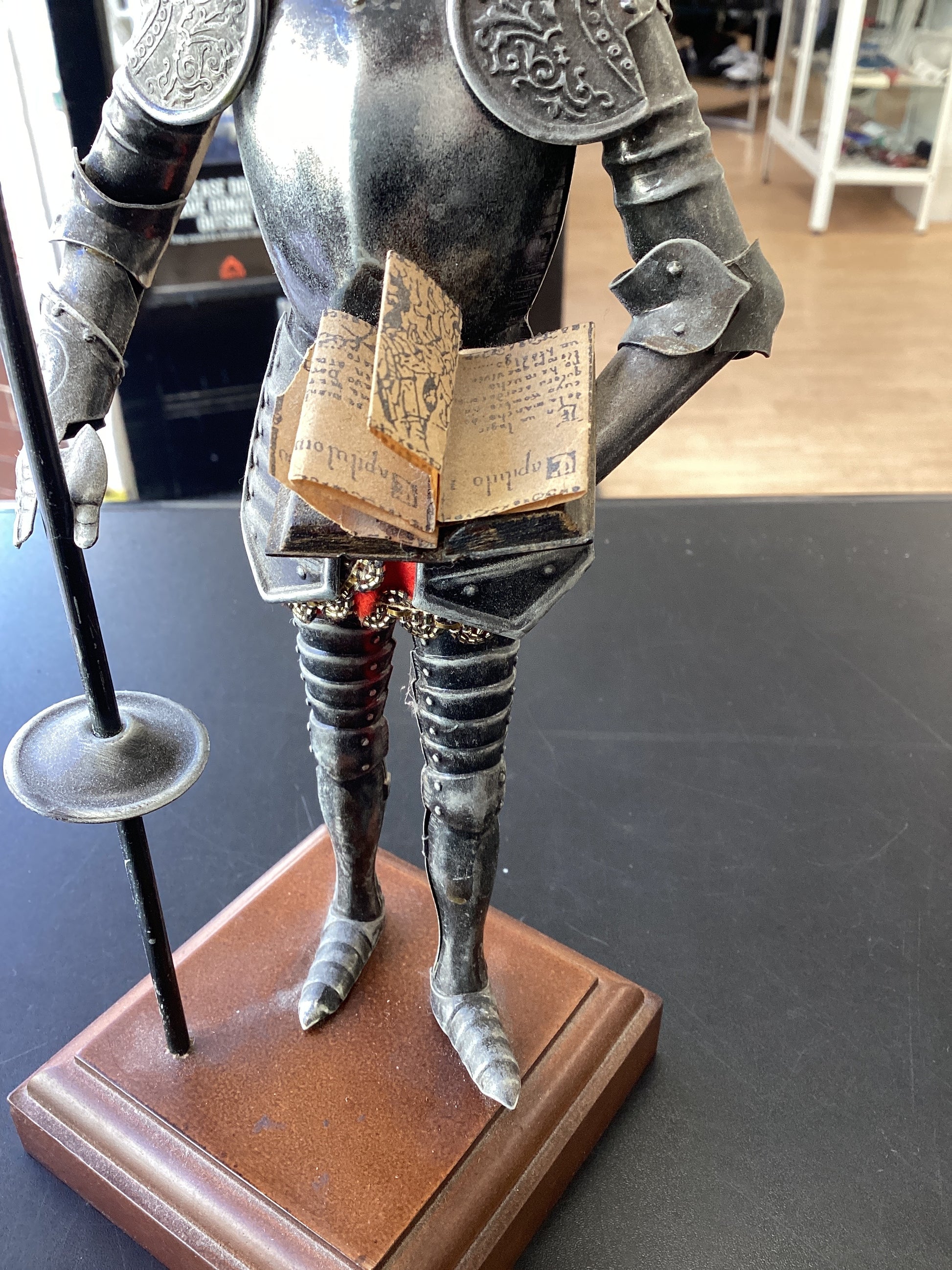 Collectible Don Quixote figurine on wooden plinth