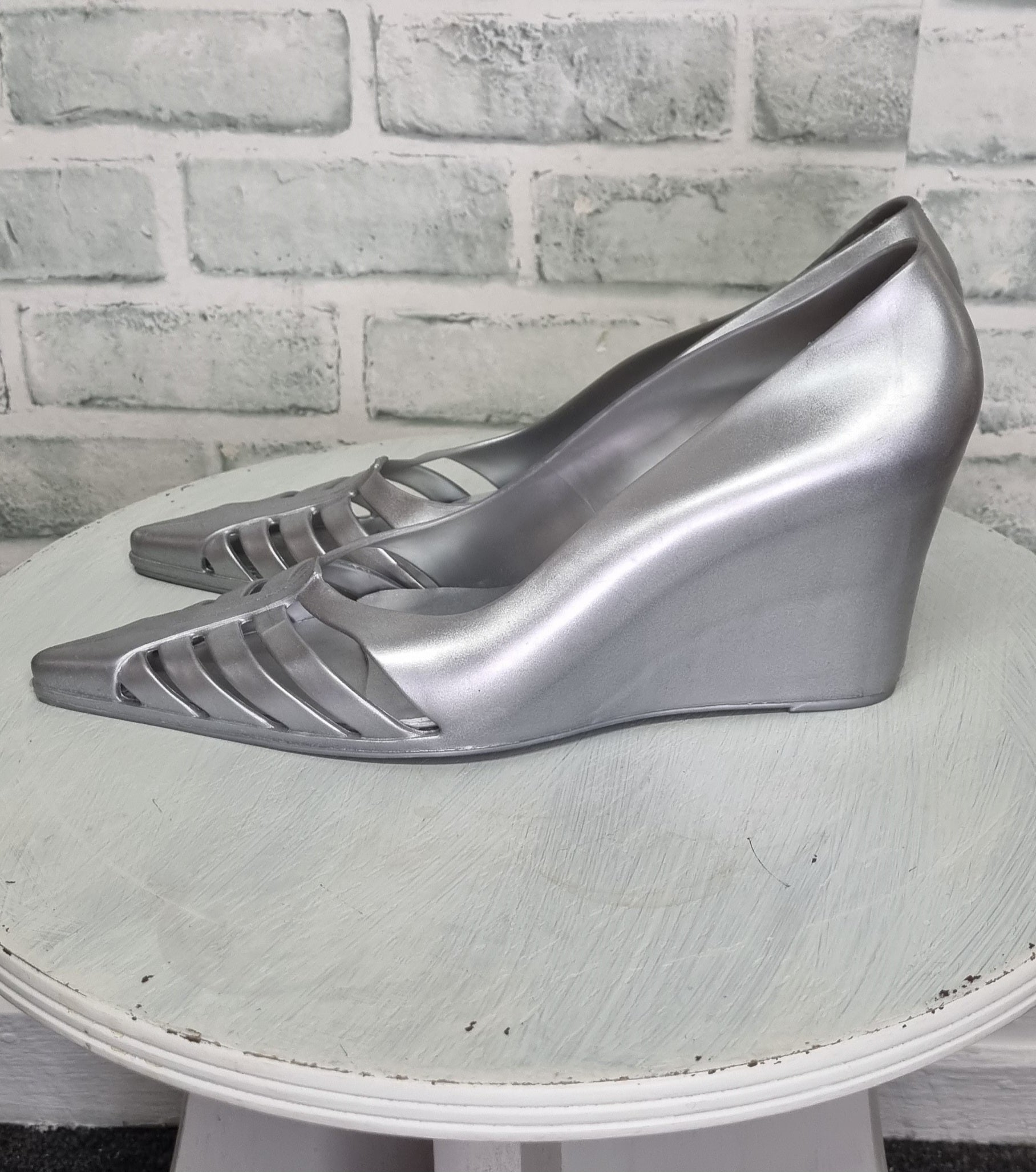 Melissa for Alexandre Herchcovitch Silver Pointy Jelly Wedges Size 40/41