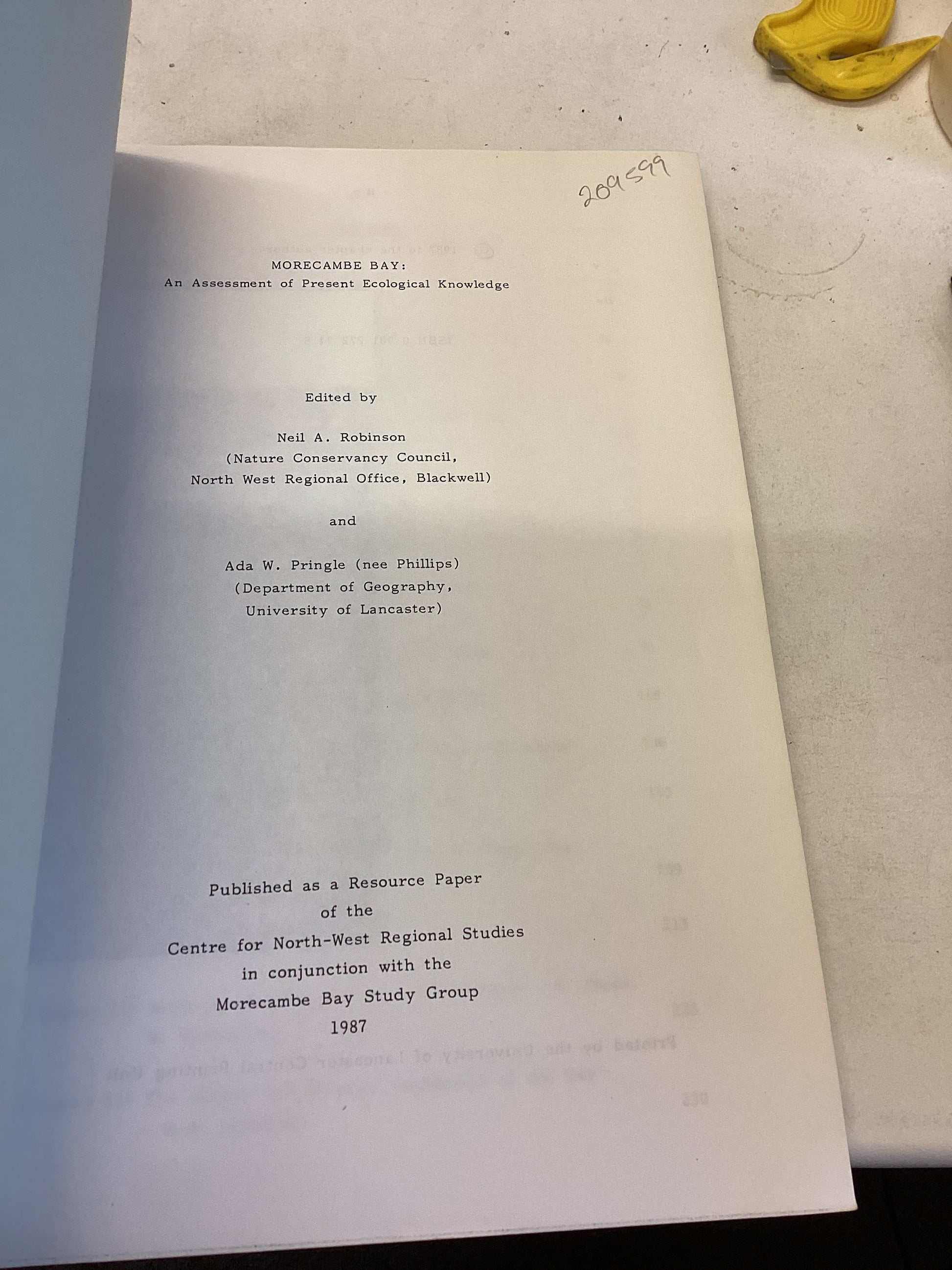Morecambe Bay An Assessment of Present Ecological Knowledge Editors N A Robinson and A W Pringle