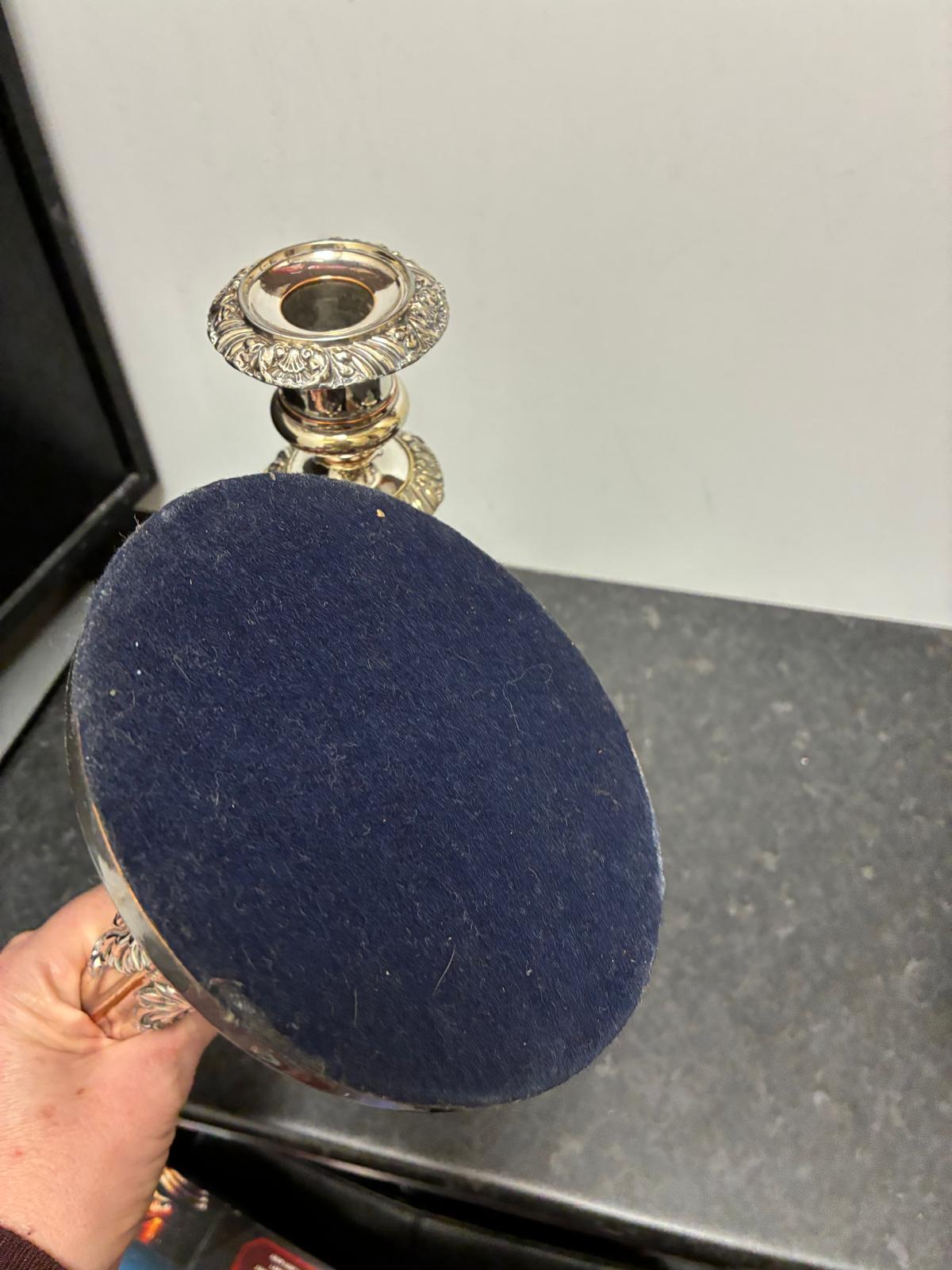 Pair Old Sheffield Plate Candlesticks 12 in Antique Georgian