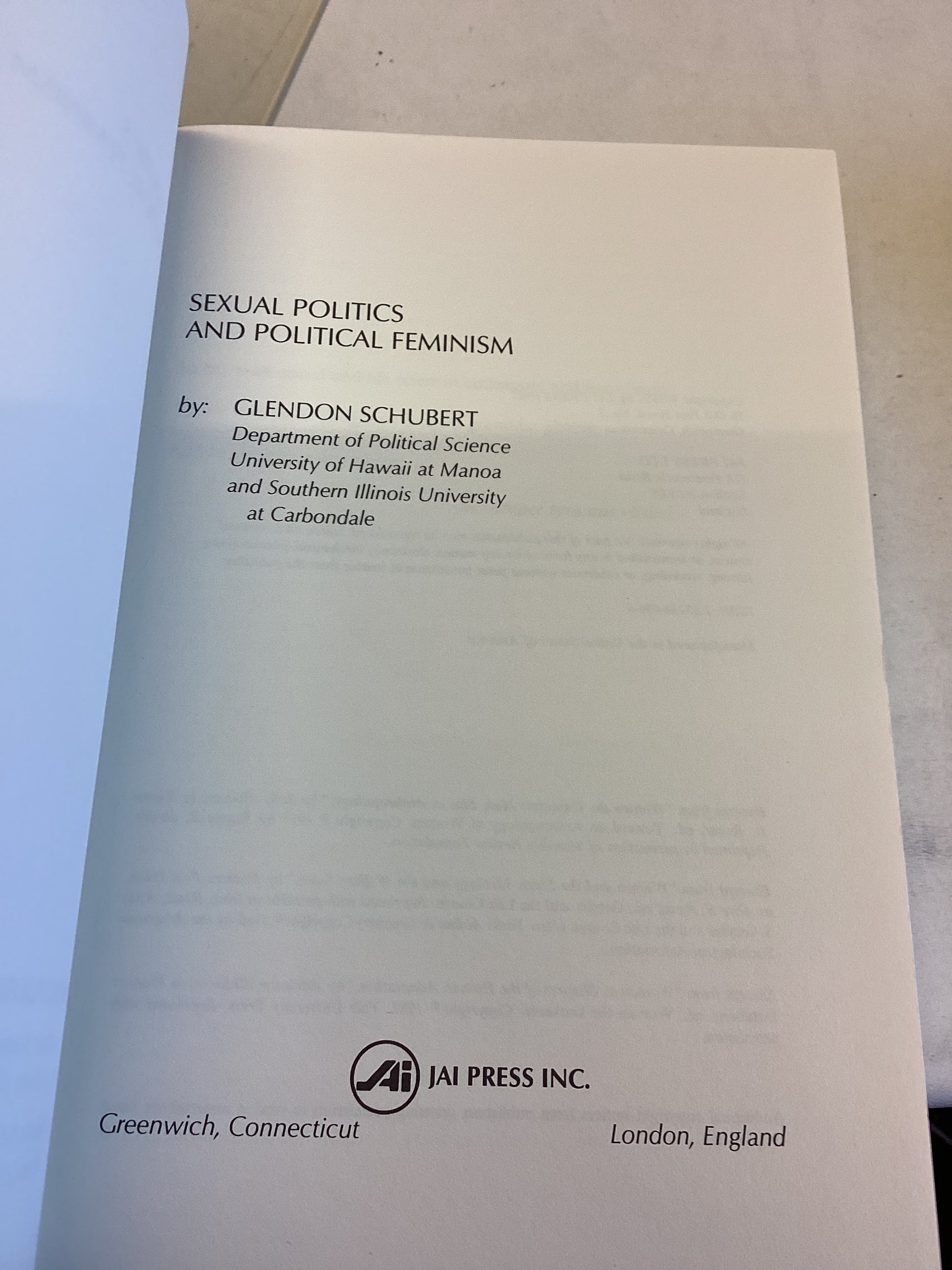 - Title: Research In Biopolitics Volume 1 1991 Sexual Politics and Political Feminism