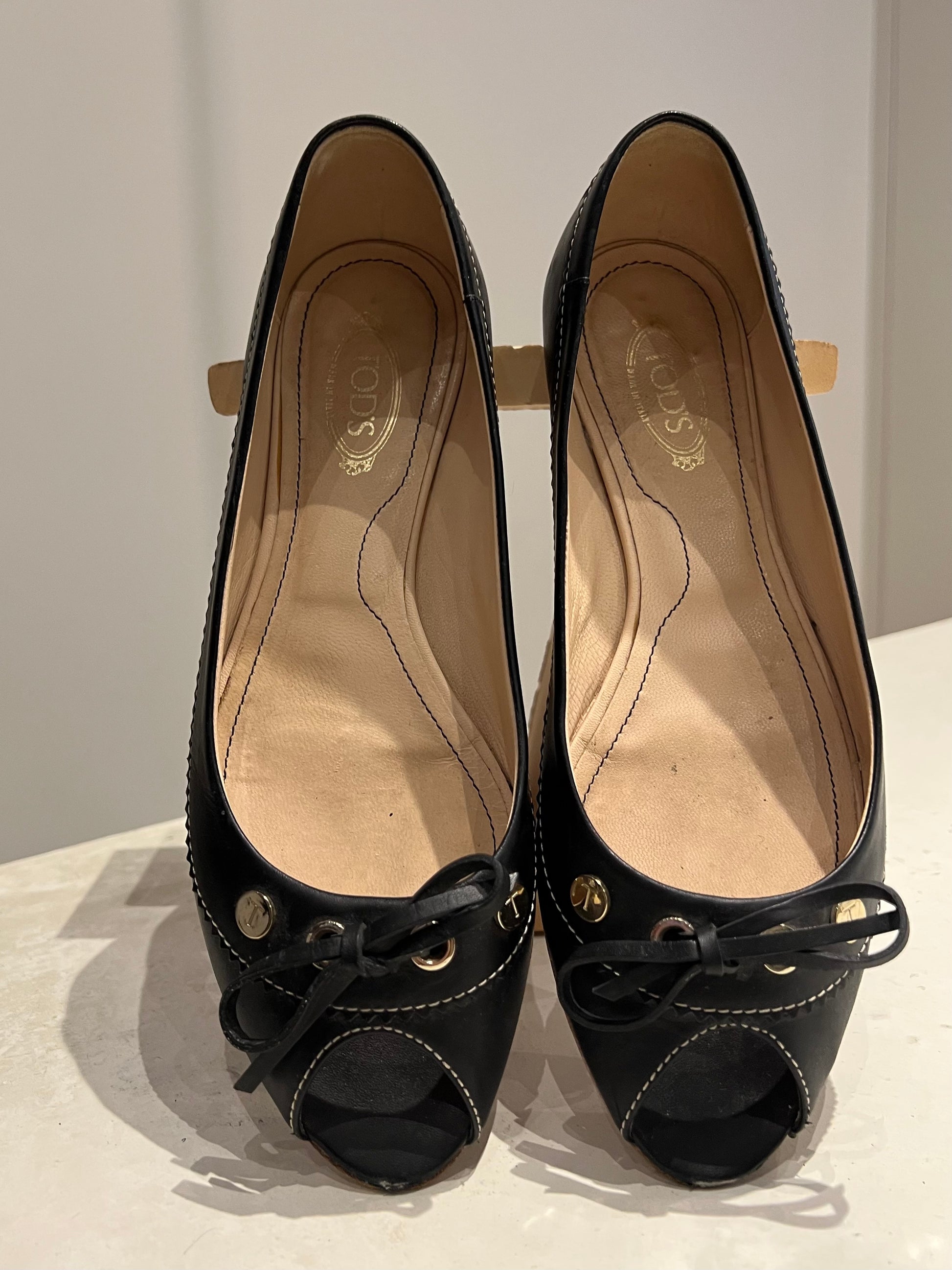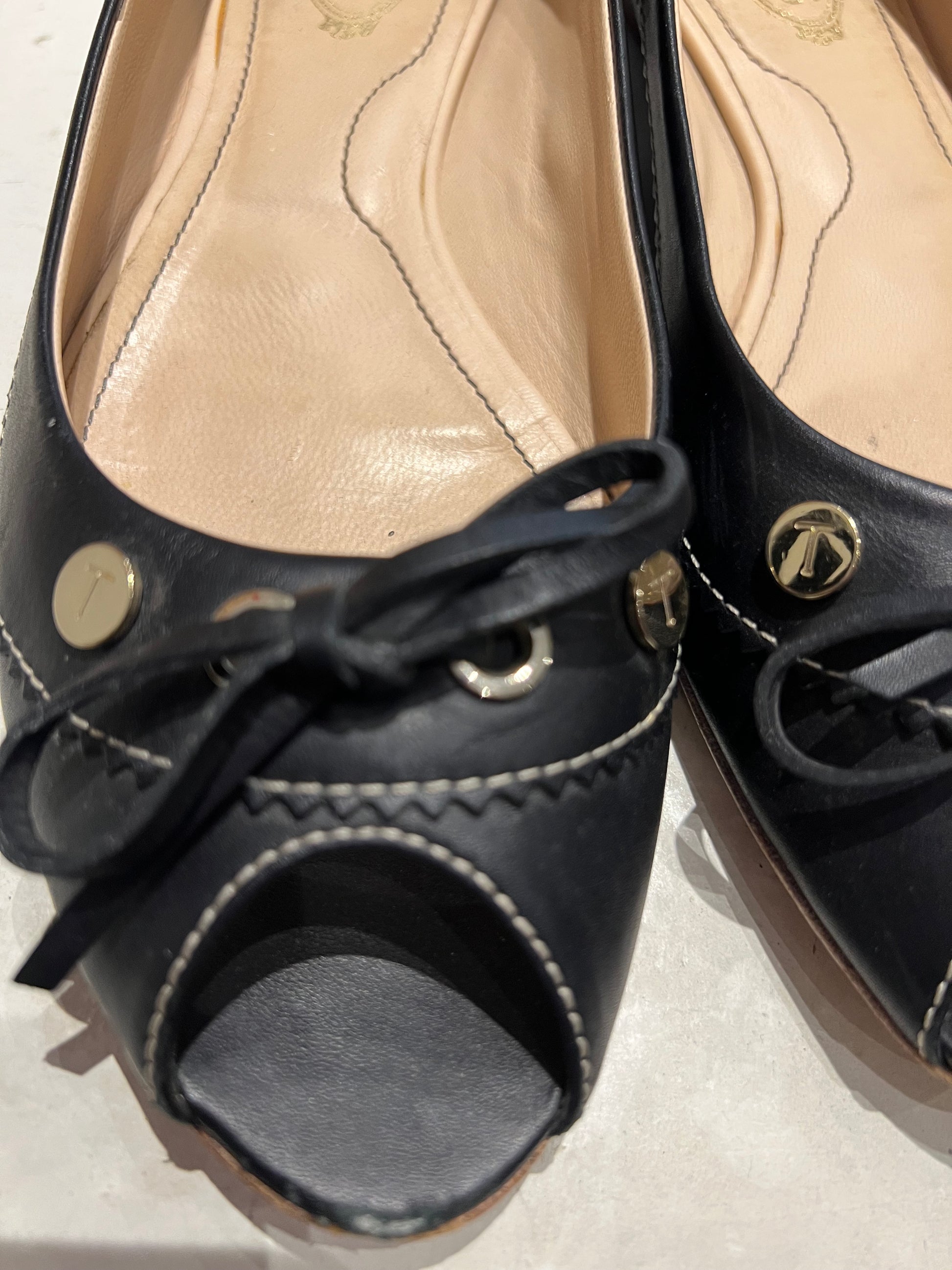 TOD'S Black Peep-Toe Flats Size 4