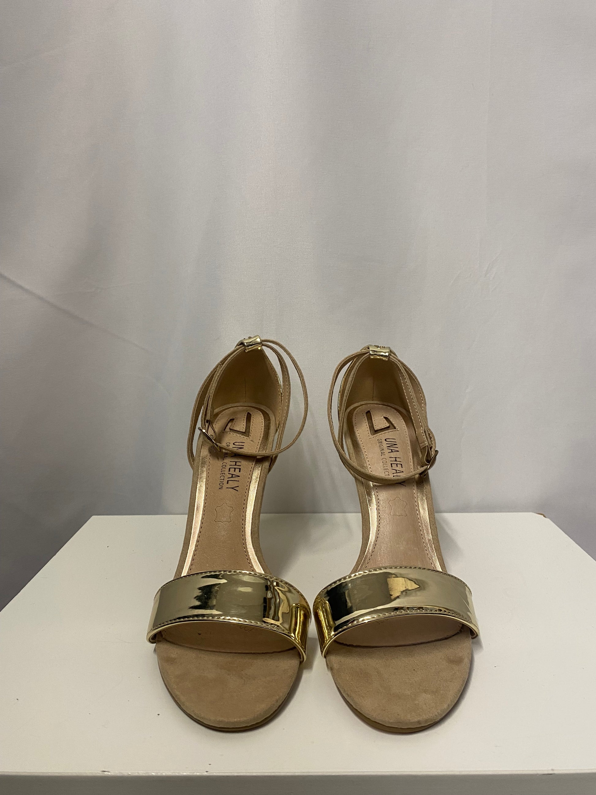 Una Healey Gold and Nude Open Toe Stiletto 5