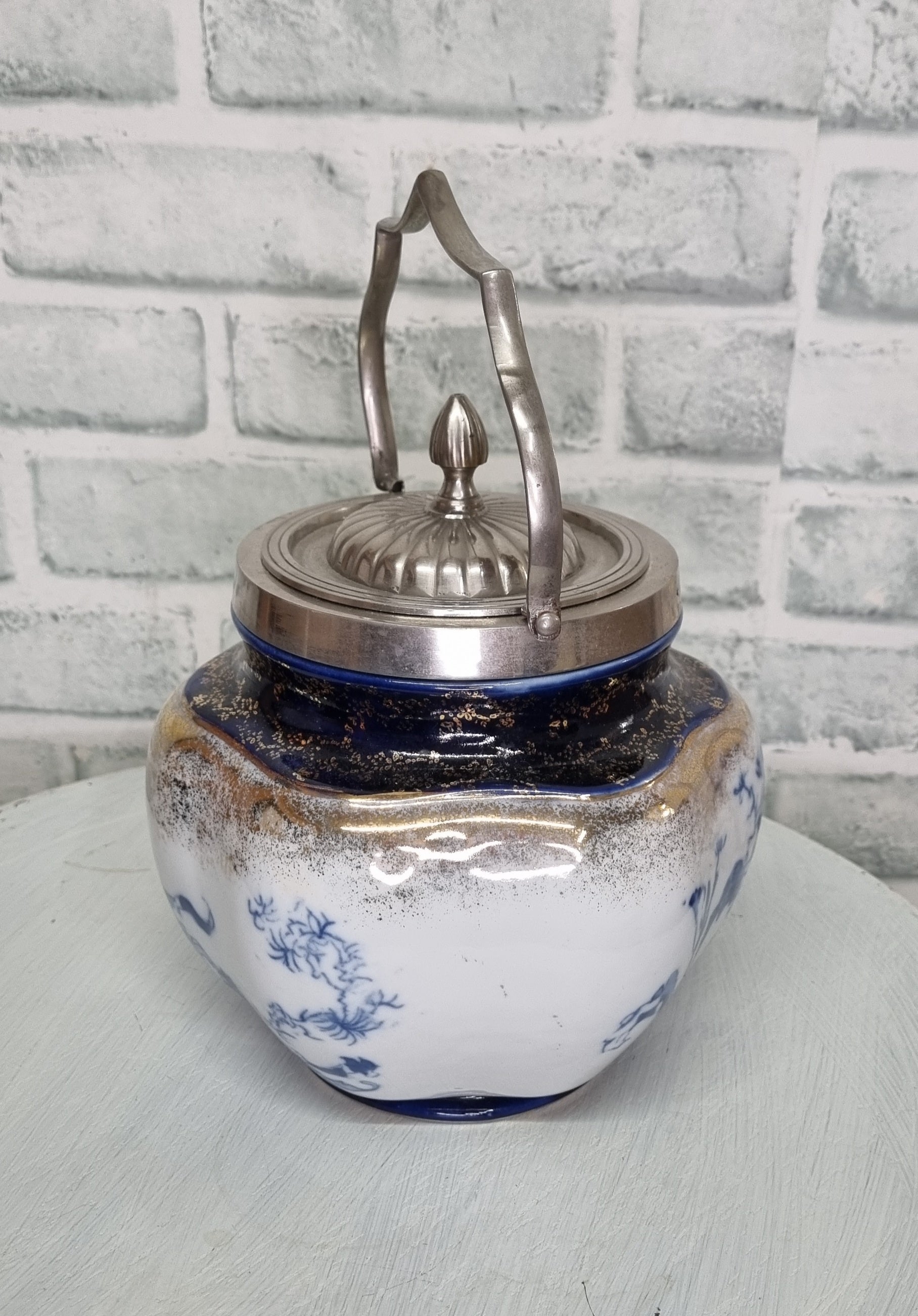 Vintage Victoria Ware Blue and Gold Biscuit Barrel