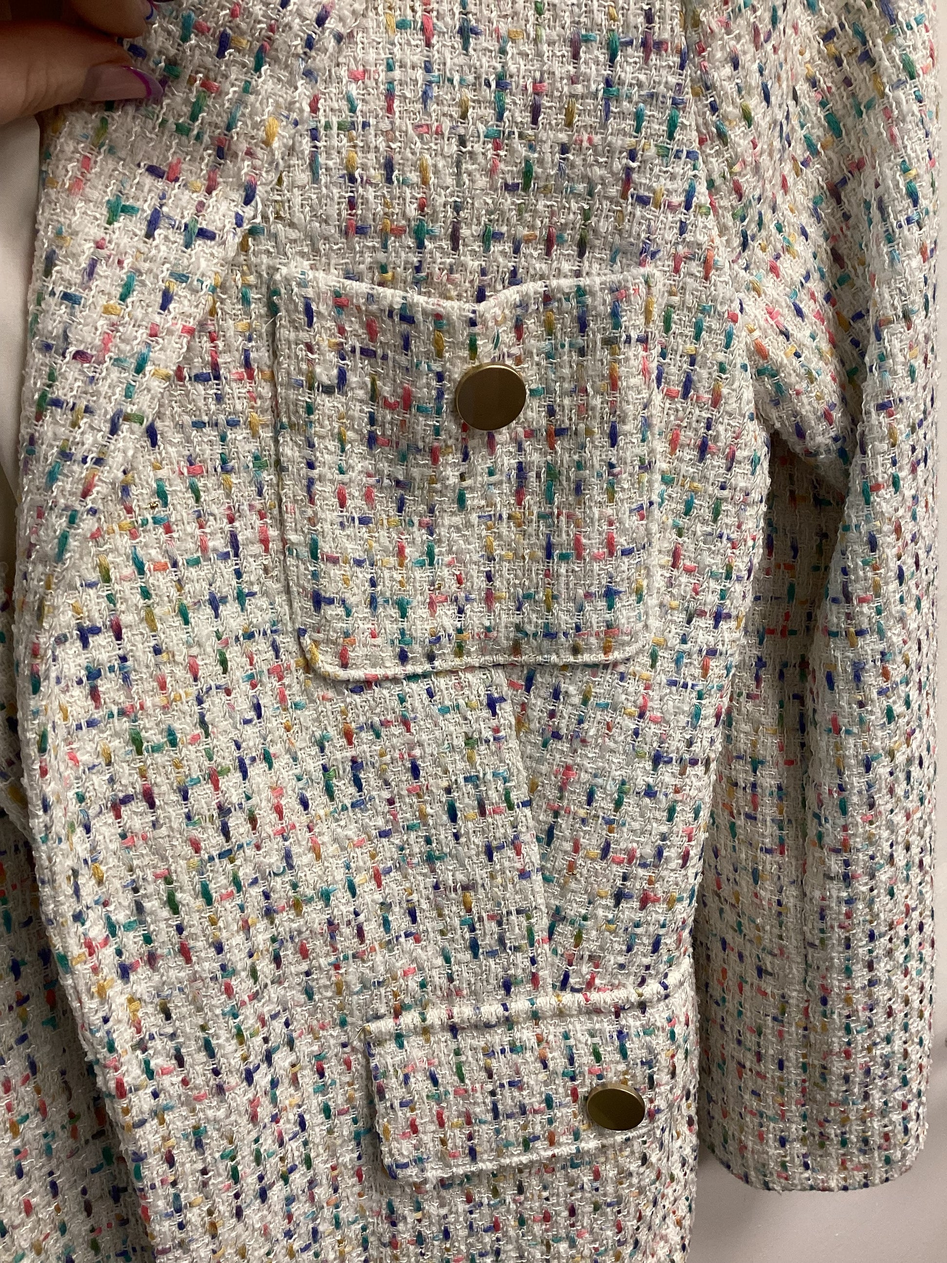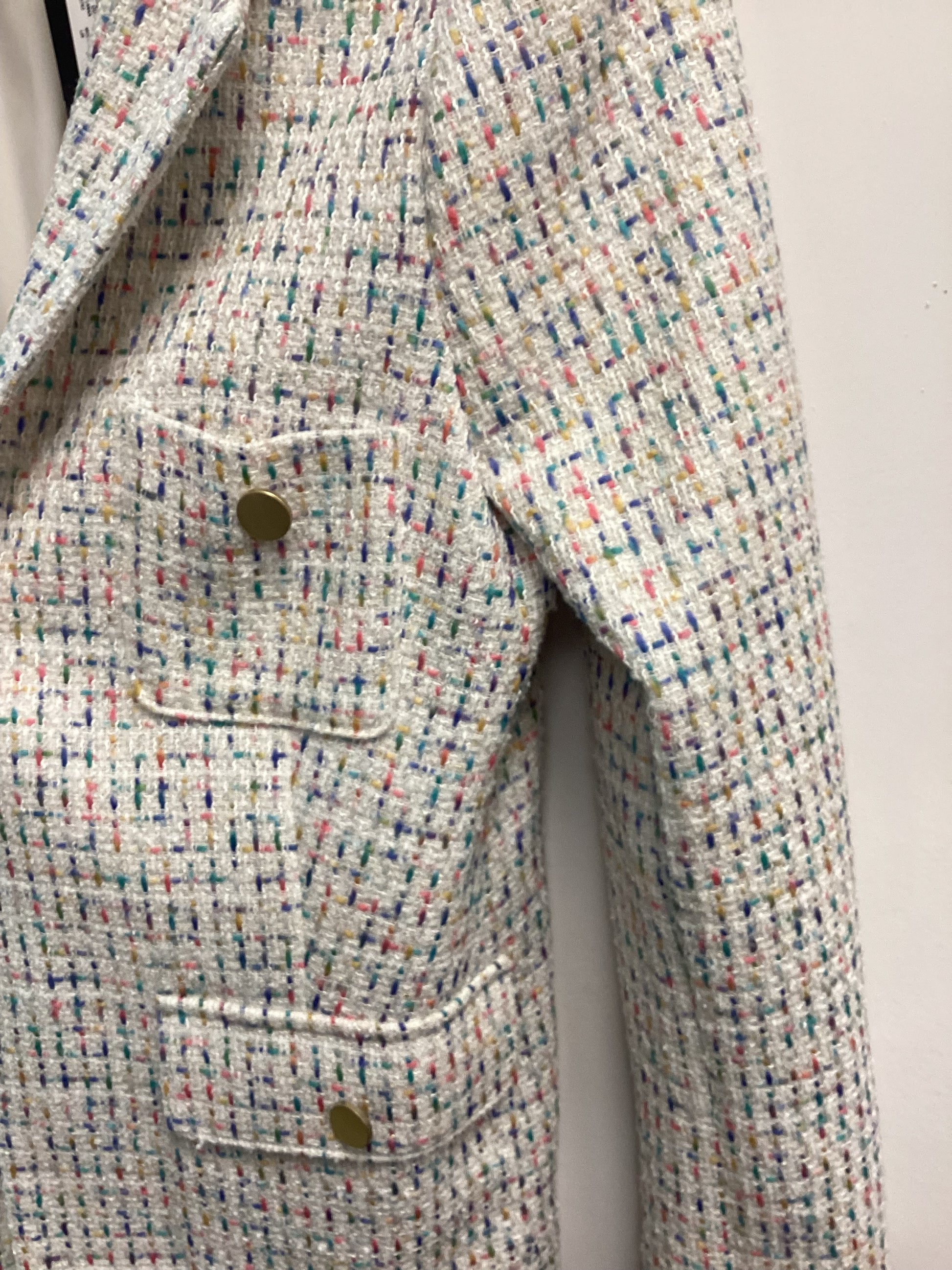 Women’s M&S Jacket - White with Colourful Flakes, Size UK8